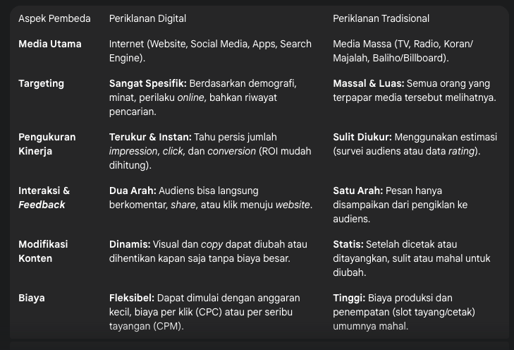 perbedaan periklanan digital dengan tradisional File Materi Tambahan : Download  |