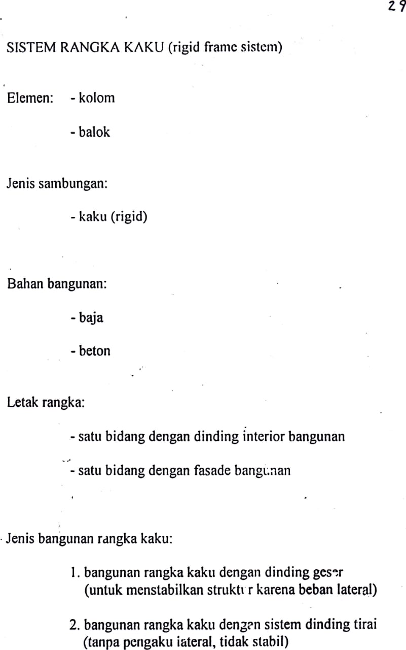 - satu dinding dengan fasade bangunan 5. Jenis bangunan rangka kaku : - banguan rangka kaku dengan dinding geser - bangunan rangka kaku dengan sitem dinding tirai